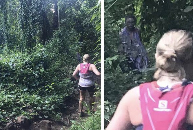 A woman may have unknowingly passed the ghost of a supposed ancient Hawaiian warrior while running through a rainforest.