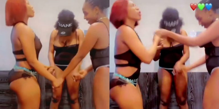 The lady then shows off her boobs with her nipples almost on display while she dances with her friends.