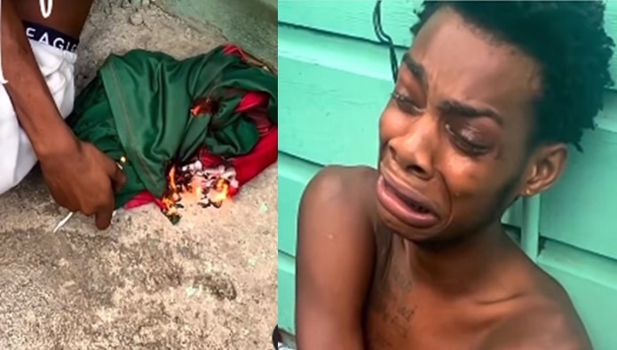 Young man cries profusely after being dumped, burns jersey girlfriend bought for him (Watch video )